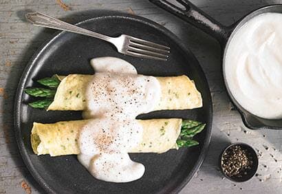 Crêpes farcies aux asperges et sa sauce chou-fleur