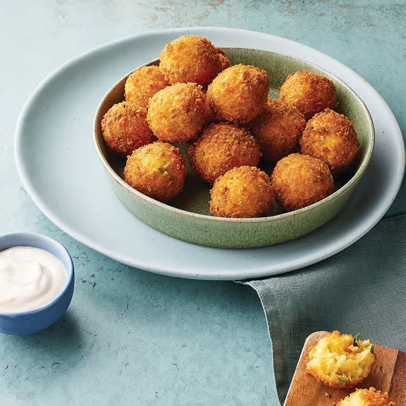 Croquettes de courge Butternut, yogourt au miel pimenté