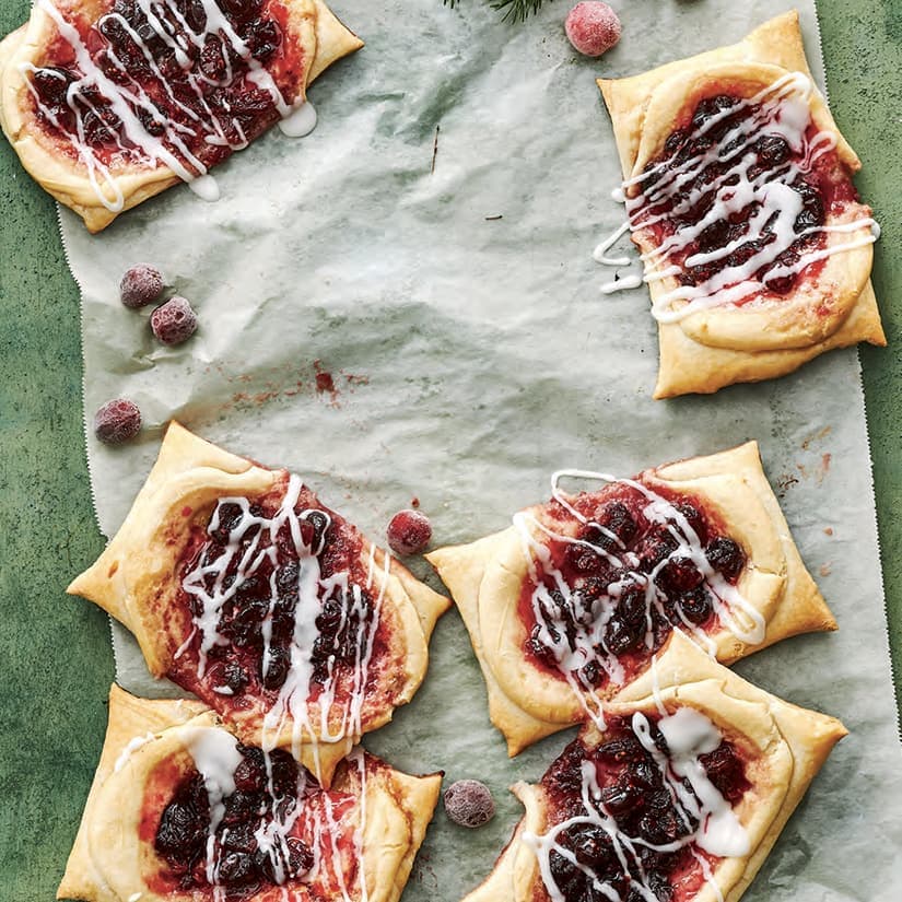 - Dans un bol, à l'aide du mélangeur électrique réglé à vitesse élevée, fouetter le fromage à la crème et le sirop d'érable jusqu'à l'obtention d'une consistance lisse et légère (de 1 à 2 minutes). À l'aide d'une cuillère, étendre le fromage à la crème au milieu de chaque rectangle, en laissant une bordure. Verser ensuite la garniture aux canneberges. Cuire au centre du four de 15 à 18 minutes (ou jusqu'à ce que la pâte soit bien gonflée et dorée). Laisser reposer de 10 à 15 minutes.