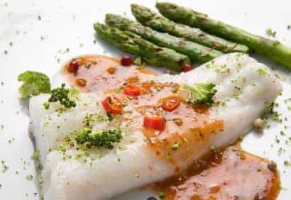 2. Entre-temps, au robot culinaire, réduire en purée lisse les poivrons rouges avec le reste de l'huile et le vinaigre. Ajouter l'ail et mélanger. Arroser le poisson de la sauce aux poivrons. Parsemer du persil.