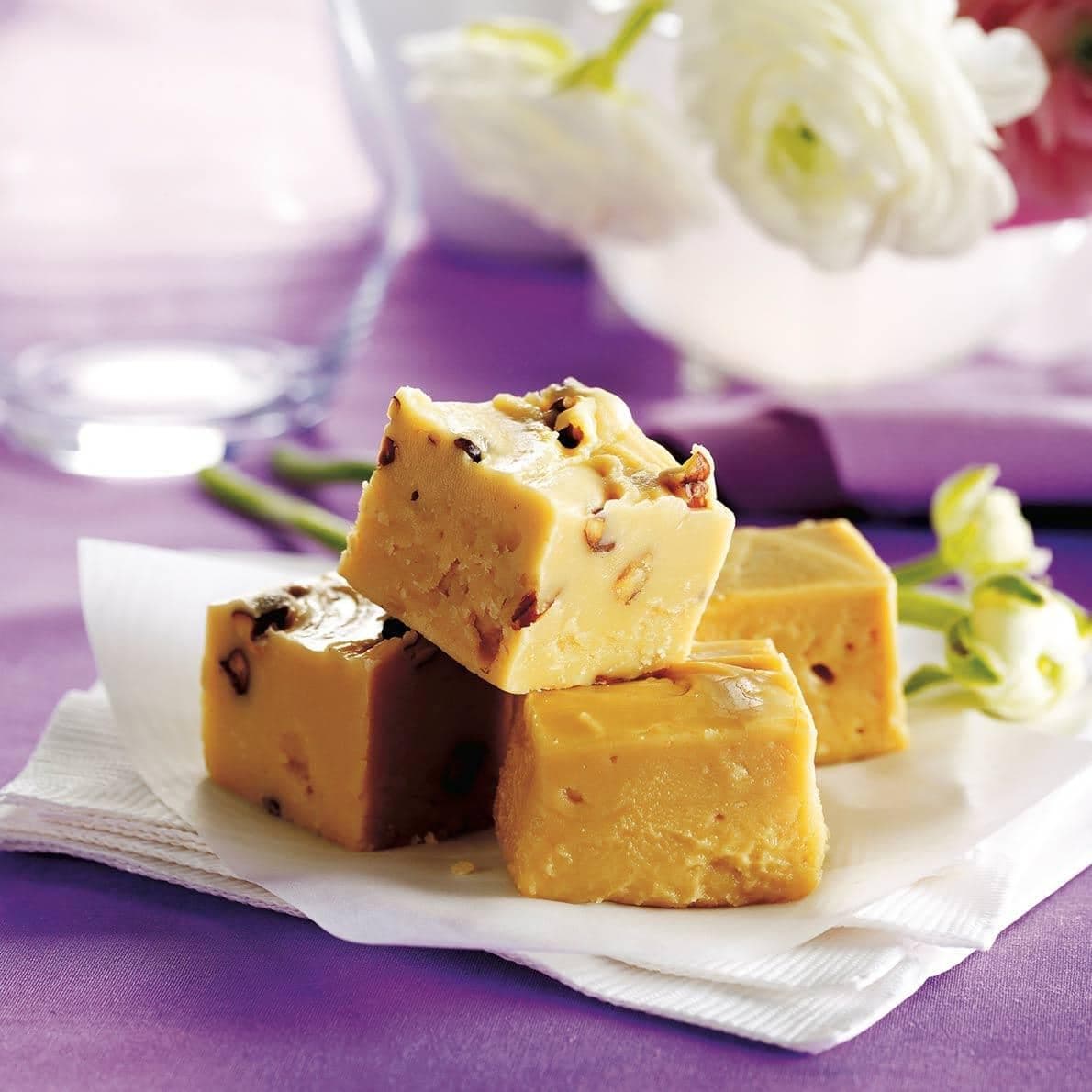 3. Déposer la casserole dans l'eau froide. Après 10 minutes, ajouter délicatement le beurre sur la surface et le laisser fondre sans brasser. Laisser refroidir la préparation pendant encore environ 8 minutes ou jusqu'à ce que le thermomètre indique 115°F (45°C). Retirer la casserole de l'eau et retirer le thermomètre de la casserole. À l'aide d'une cuillère de bois propre, brasser vigoureusement la préparation sans arrêt de 8 à 10 minutes ou jusqu'à ce qu'elle ait épaissi et perdu son aspect lustré (continuer de brasser si la préparation est encore luisante). Ajouter les noix, si désiré, et mélanger.