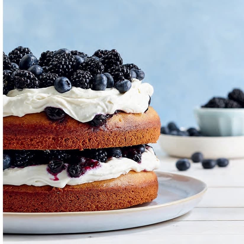 Gâteau étagé crème de ricotta, bleuets et mûres