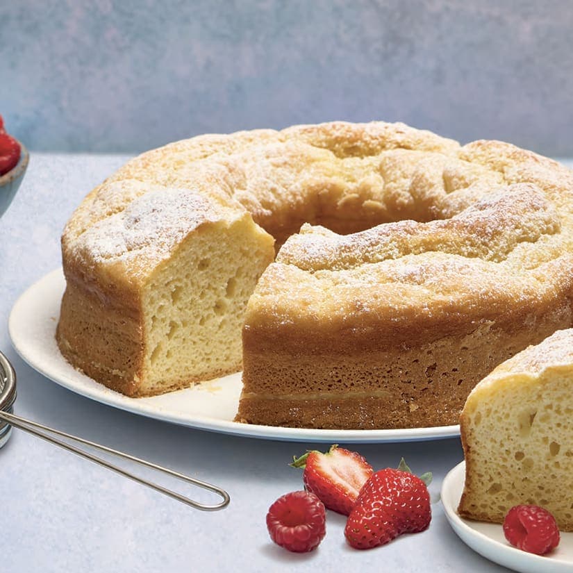 - Verser la pâte dans le moule et lisser le dessus à l'aide d'une spatule. Cuire au centre du four de 35 à 40 minutes, ou jusqu'à ce qu'un cure-dent piqué au centre en ressorte propre. Laisser refroidir au moins 45 minutes avant de démouler le gâteau. Le saupoudrer d'un peu de sucre glace et le garnir de fruits frais, si désiré. (Le gâteau, sans garniture, se conservera 4 jours au réfrigérateur et 3 mois au congélateur, emballé dans de la pellicule plastique.)