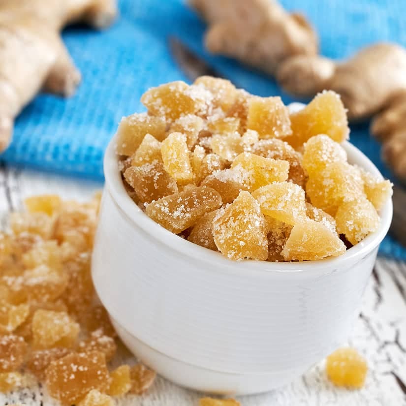 - Dans un petit bol, avec les doigts, mélanger le gingembre confit avec 1/4 t (60 ml) de sucre pour bien l'enrober. (Le gingembre confit se conservera jusqu'à 3 mois dans un contenant hermétique, à la température ambiante.)