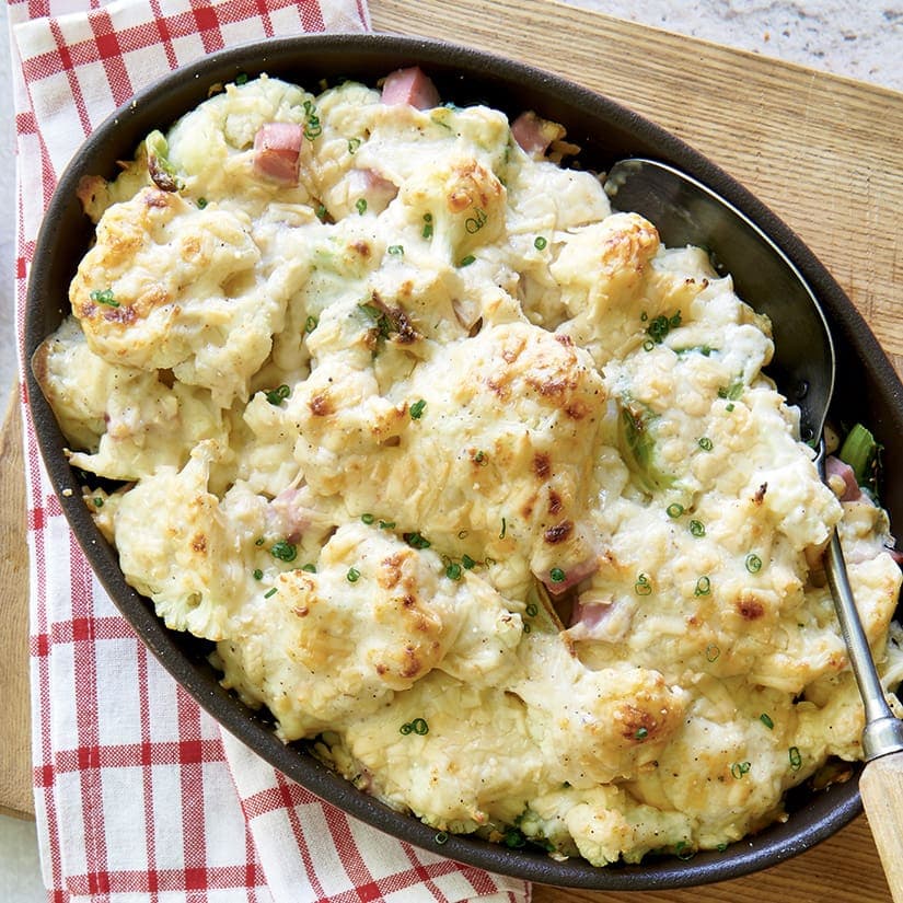 - Déposer dans le plat de cuisson et ajouter le jambon. Mélanger délicatement. Réserver.