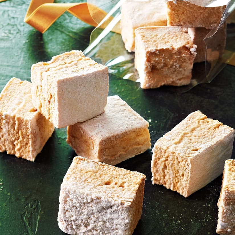 - Démouler la guimauve en soulevant le papier parchemin. À l'aide d'un couteau beurré, couper la guimauve en 36 carrés (au besoin, égaliser les carrés sur les côtés). Mettre les guimauves dans un grand bol, les parsemer du reste du sucre glace et mélanger délicatement pour bien les enrober. Mettre les guimauves sur une plaque de cuisson tapissée de papier ciré (secouer pour enlever l'excédent de sucre). Laisser sécher à la température ambiante pendant 1 heure. À l'aide d'un pinceau à pâtisserie sec, retirer l'excédent de sucre glace, au besoin. (Les guimauves se conserveront jusqu'à 1 semaine à la température ambiante.)