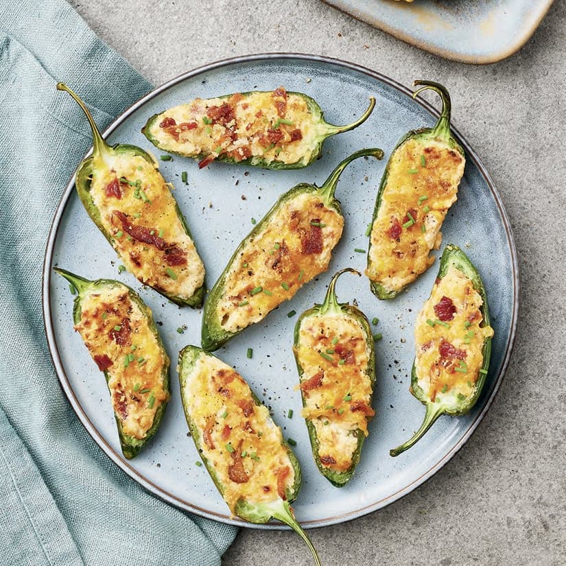 3. Vaporiser le panier d'une friteuse à air chaud avec un enduit végétal. Déposer les jalapenos farcis dans le panier de la friteuse, en une seule couche, et les vaporiser d'enduit. Cuire à 350 °F (180 °C) pendant 10 minutes ou jusqu'à ce que la farce soit dorée et que les piments soient tendres. Saupoudrer du reste de la ciboulette et servir aussitôt.