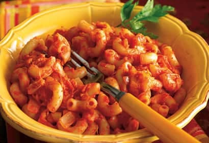 - Dans un grand plat allant au four, mélanger les macaronis réservés et la préparation au fromage. Couvrir le plat de papier d'aluminium et cuire au four préchauffé à 350°F (180°C) de 20 à 30 minutes.
