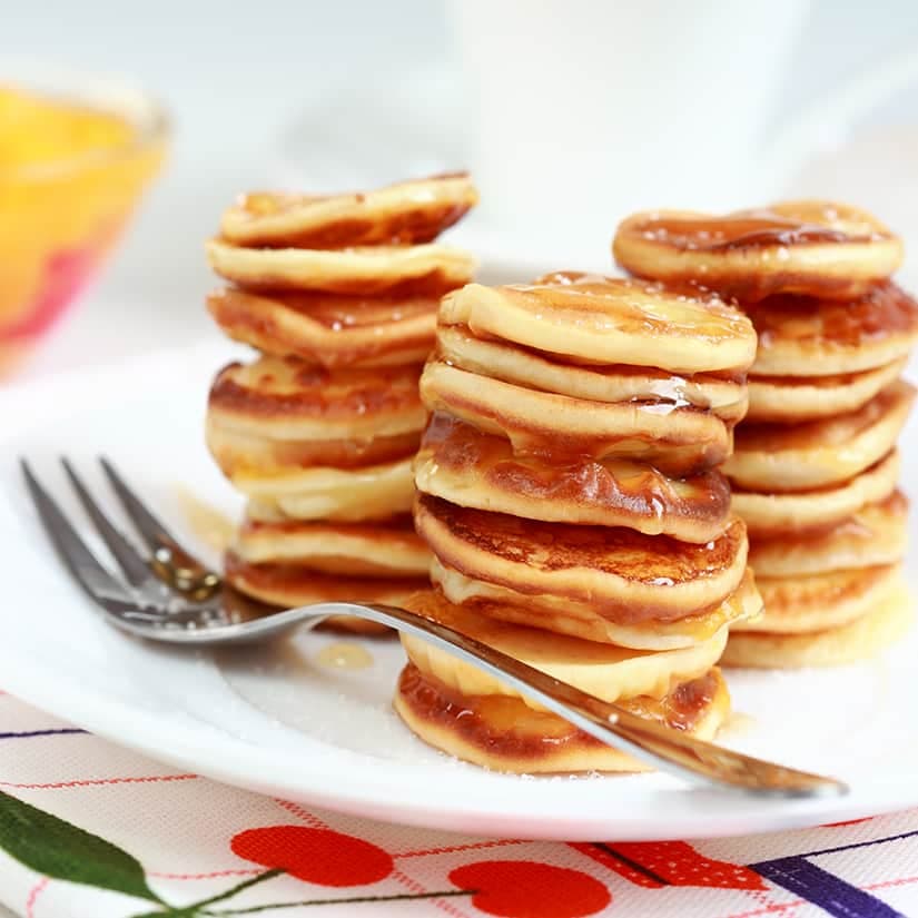 2. Badigeonner légèrement un poêlon à surface antiadhésive d'un peu d'huile et chauffer à feu moyen. Pour chaque mini-pancake, verser environ 1 c. à tab (15 ml) de la pâte dans le poêlon (cuire 4 mini-pancakes à la fois). Cuire pendant 1 minute ou jusqu'à ce que le dessous du pancake soit doré et qu'il se forme des cratères à la surface. Retourner le pancake et poursuivre la cuisson pendant 1 minute ou jusqu'à ce que le dessous soit doré. Répéter l'opération avec le reste de la pâte et de l'huile.