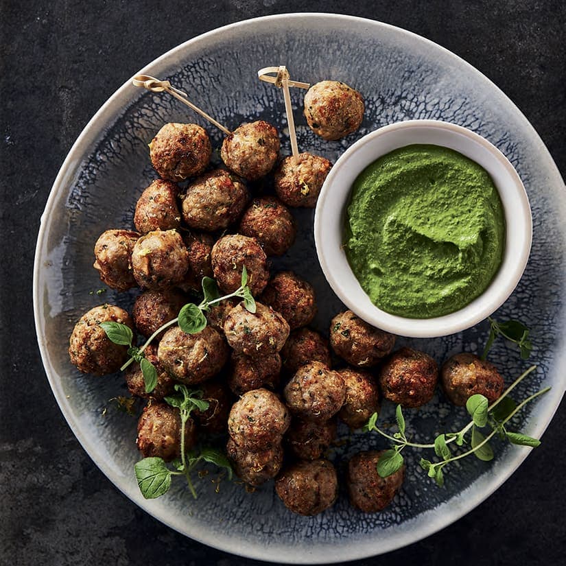 - Servir les boulettes accompagnées de la sauce. Pour un repas complet, les déposer sur un nid d'orzo, si désiré. Garnir d'un peu de zeste de citron et d'origan frais, si désiré.