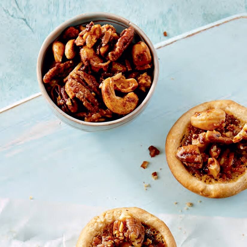 - Dans un bol, mélanger les pacanes, les noix de cajou, le sirop d'érable et la noix de coco. Ajouter la vanille.