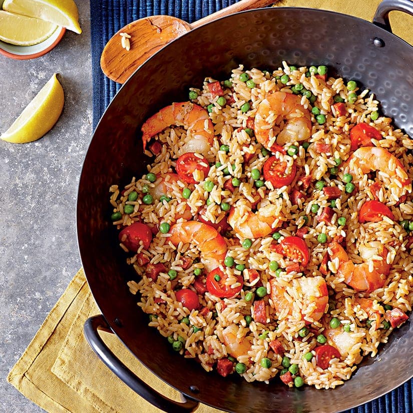 - On peut remplacer les crevettes et le chorizo par du poulet, des calmars, des moules, du poisson ou encore du tofu fumé.