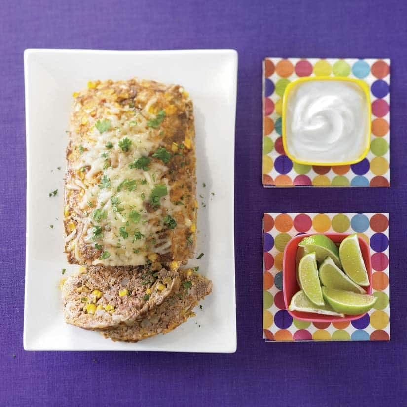 - Parsemer le pain de viande du fromage et laisser reposer pendant 10 minutes. Parsemer de la coriandre. Servir accompagné de quartiers de lime, si désiré.