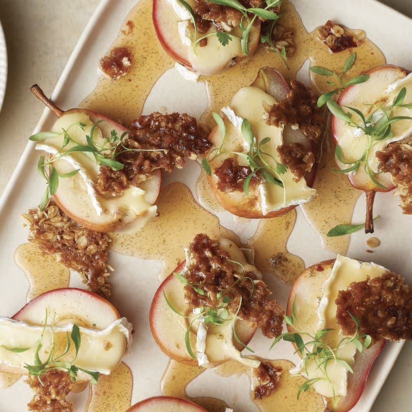3. 3. Au moment de servir, napper les poires du sirop. Parsemer du croustillant et de micropousses, si désiré