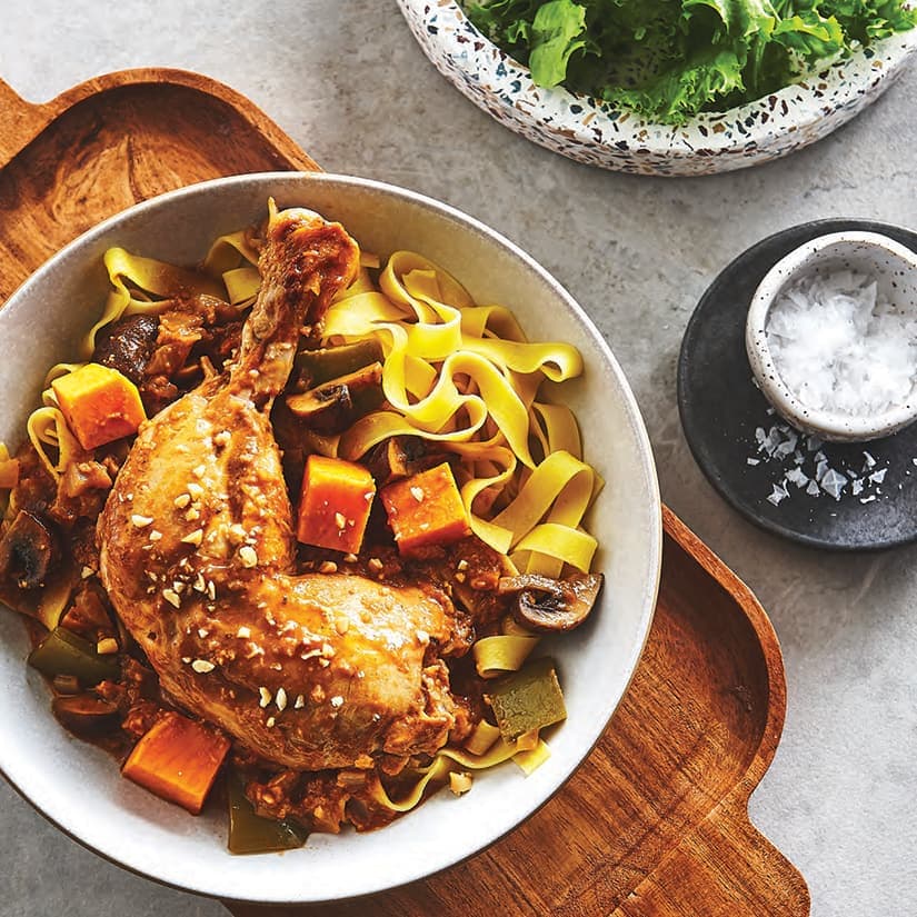 - Ajouter le poivron et les champignons dans la mijoteuse, et poursuivre la cuisson 30 minutes. (Le poulet se conservera jusqu'à 3 jours au réfrigérateur ou jusqu'à 2 mois au congélateur.)