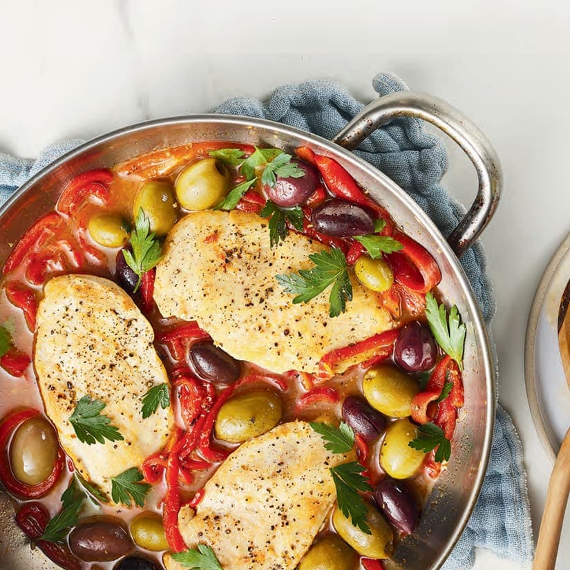Poulet aux olives et aux poivrons rôtis