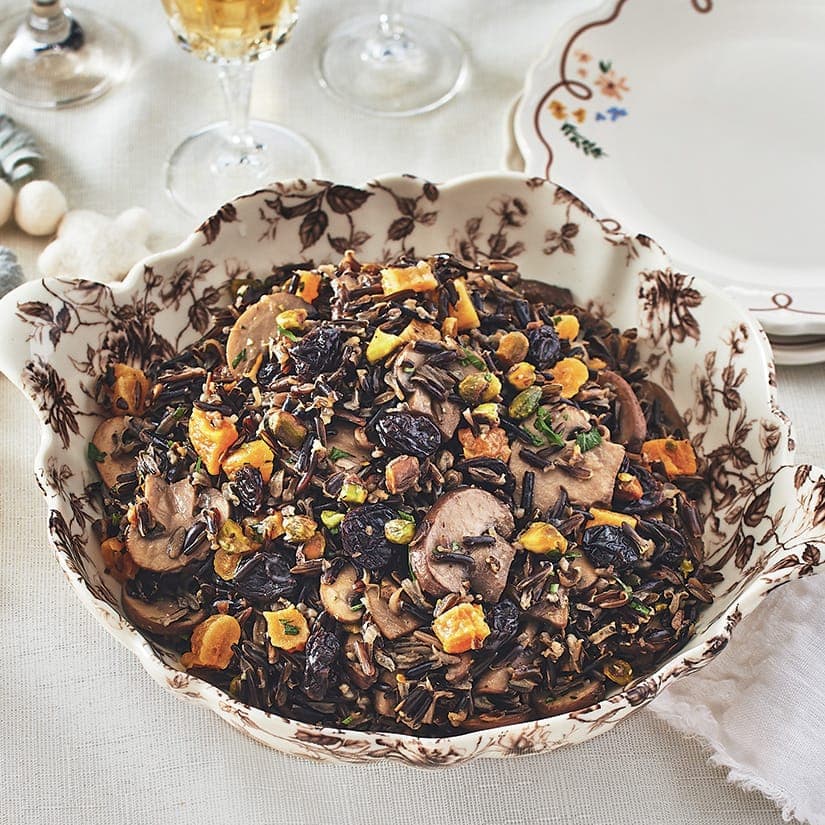 Riz sauvage aux champignons, aux fruits secs et aux pistaches