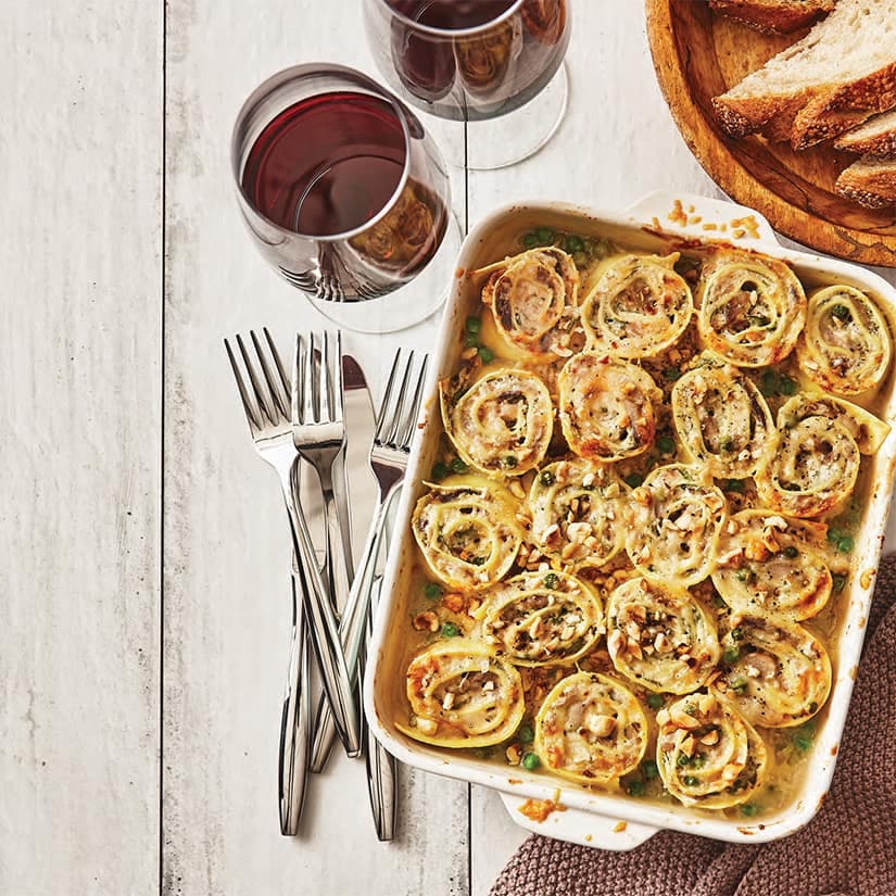 - Cuire au four préchauffé à 350 °F (180 °C) de 15 à 20 minutes ou jusqu'à ce que les rotolos soient bien chauds. Au moment de servir, parsemer du zeste de citron.