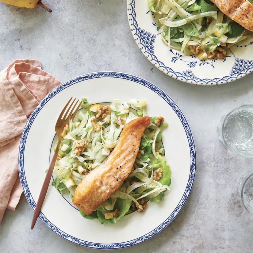 Salade d’automne au saumon, fenouil et noix de Grenoble