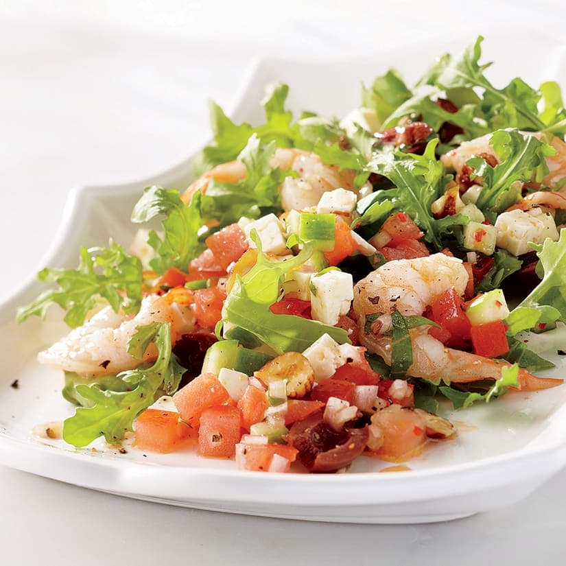 Salade de roquette aux crevettes et au melon d'eau