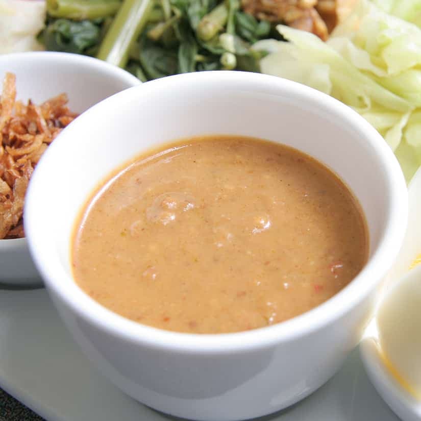 - Au pied-mélangeur, réduire en sauce lisse le beurre d'arachides, l'huile de canola, le vinaigre de riz, le jus de lime, la sauce soya, le miel, la sauce sriracha, l'ail et le gingembre. (La sauce se conservera jusqu'à 5 jours au réfrigérateur.)