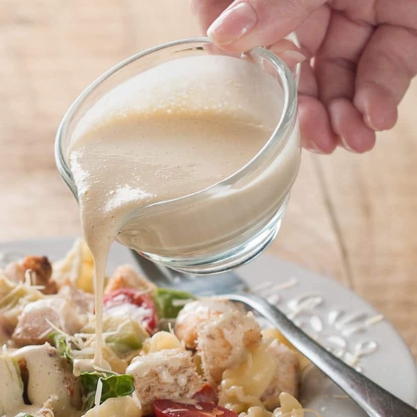 - Dans un petit bol, à l'aide d'un fouet, mélanger le jus de citron, le vinaigre de vin rouge, la sauce Worcestershire, la moutarde de Dijon, les anchois et l''ail. Poivrer. Incorporer petit à petit l'huile d'olive en fouettant. (La sauce se conservera jusqu'à 2 jours au réfrigérateur.)