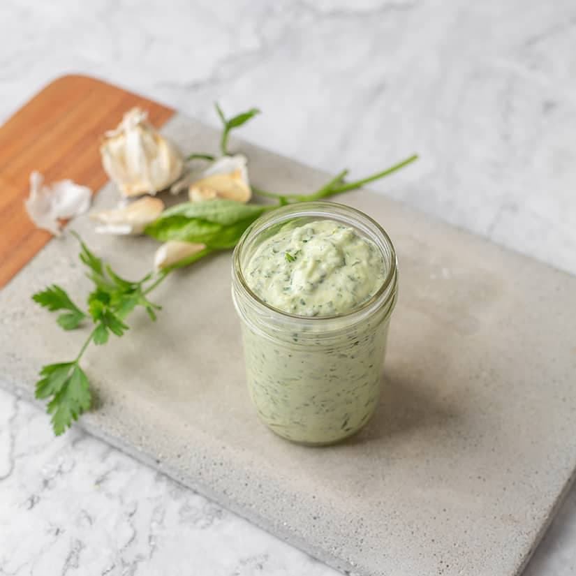 - Au robot culinaire ou au mélangeur, mélanger l'aneth, la menthe, le persil, le fromage féta, l'huile d'olive, l'ail et les oignons verts jusqu'à ce que la sauce soit lisse.