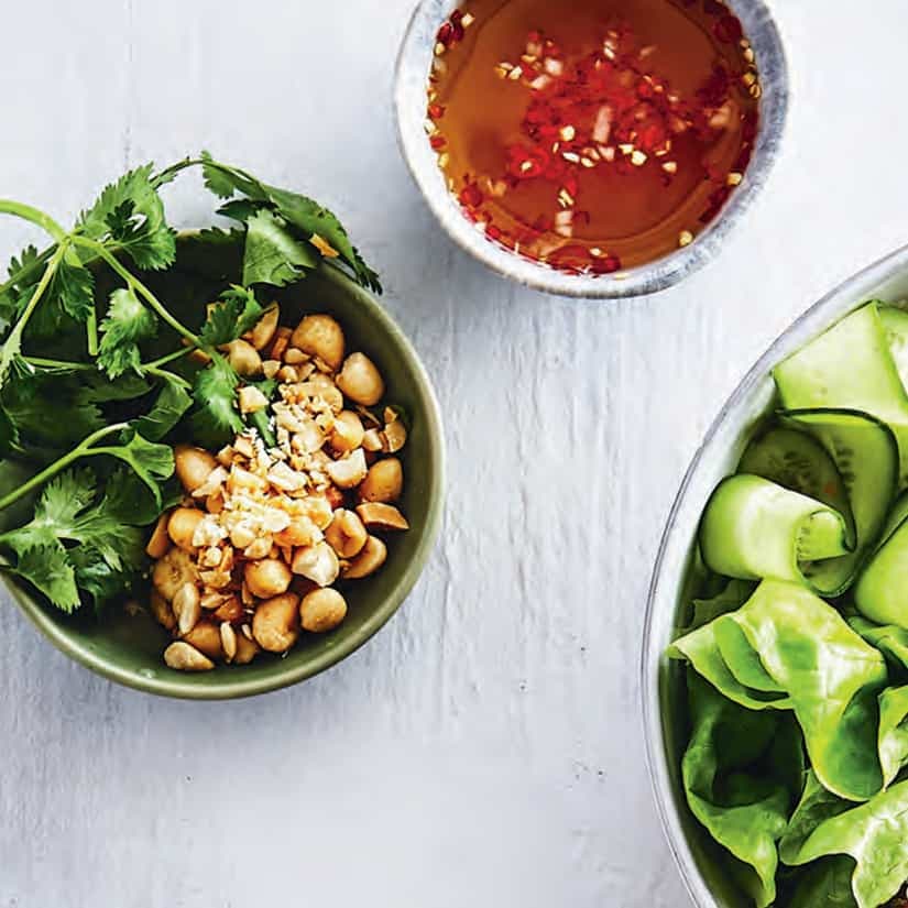 1. Dans un petit bol, mettre l'eau, le jus de lime, la sauce de poisson, le sucre, l'ail et le piment chili thaï. Mélanger jusqu'à ce que le sucre soit dissous. (La sauce se conservera jusqu'à 5 jours au réfrigérateur).