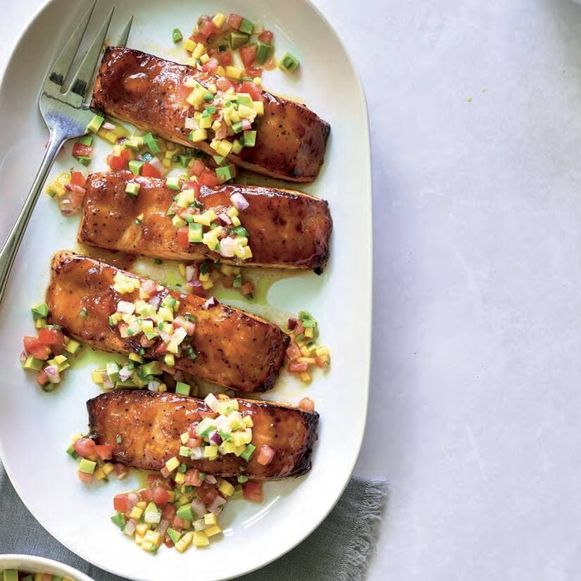 Saumon au four avec salsa à la mangue