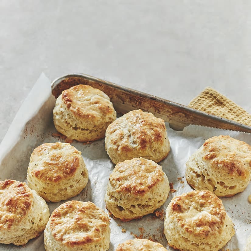 - Sur une surface farinée, pétrir la pâte 1 minute ou jusqu'à ce qu'elle se tienne bien. Avec les mains, aplatir la pâte jusqu'à une épaisseur d'environ 1 po (2,5 cm). À l'aide d'un emporte-pièce rond de 2 1/2 po (6 cm) de diamètre, former des scones en rassemblant la pâte et en la pétrissant de nouveau pour utiliser toute la pâte. Placer les scones sur la plaque, en les espaçant légèrement. Dans un petit bol, mélanger le jaune d'œuf et le lait à l'aide d'une fourchette. Badigeonner les scones de cette dorure. Cuire au centre du four de 16 à 20 minutes ou jusqu'à ce qu'ils soient bien gonflés et dorés. Servir chauds ou tièdes. (Les scones se conserveront 2 jours dans un contenant hermétique, à température ambiante, ou 6 mois au congélateur.)