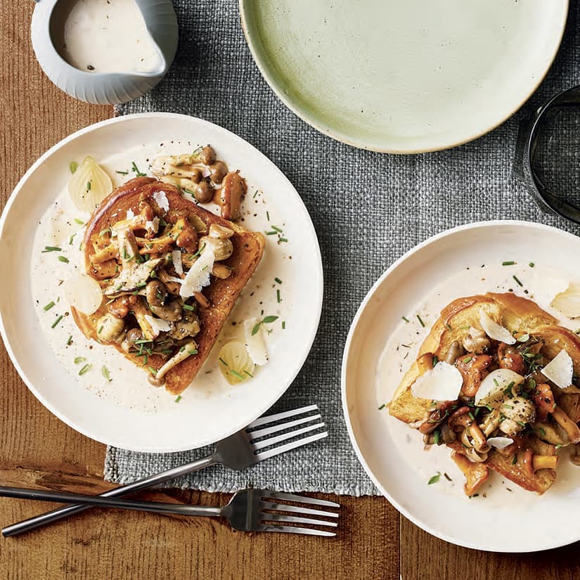 - Sauce suprêmeChampignons poêlésTartines et garnitures
