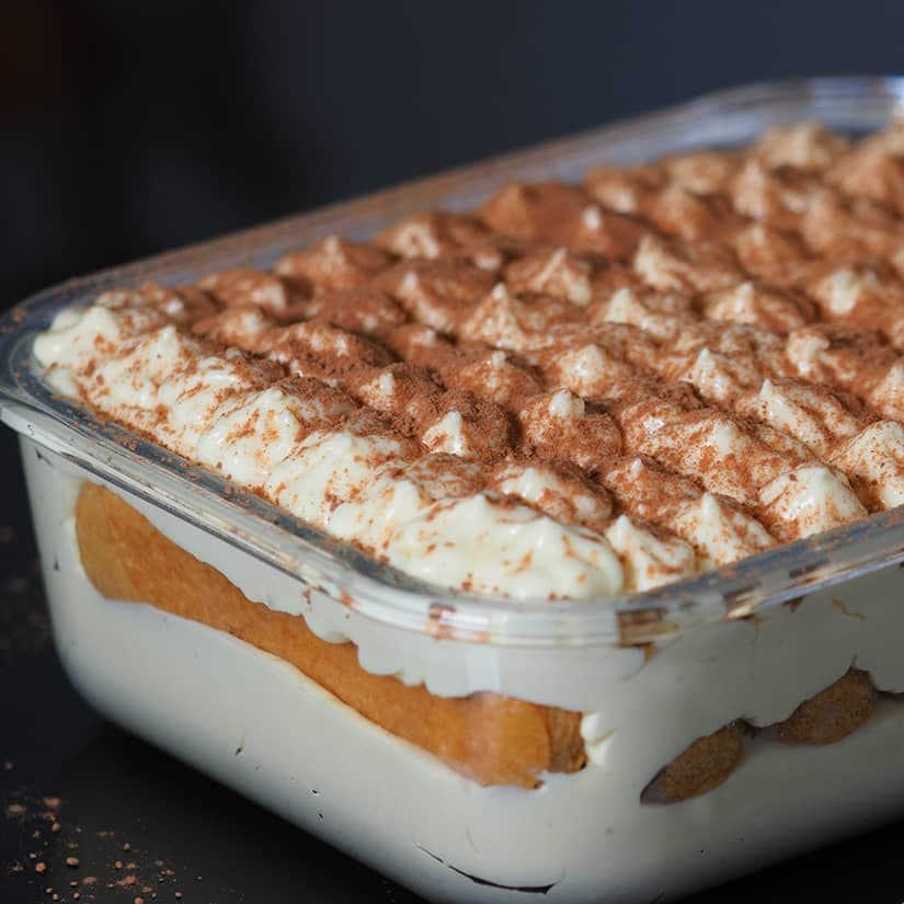 1. Dans un petit bol, dissoudre le café dans l'eau bouillante, puis ajouter l'eau froide et mélanger. Dans un grand bol, à l'aide d'un batteur électrique, battre la crème jusqu'à ce qu'elle forme des pics mous. Ajouter le fromage mascarpone et le sucre glace et battre jusqu'à ce que le mélange forme des pics fermes.