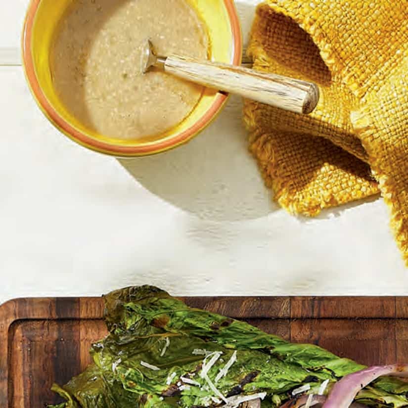 - Dans une tasse à mesurer ou un petit bol, à l'aide d'un pied-mélangeur, mélanger l'huile de canola, le parmesan, le jus de citron, le vinaigre de vin, la sauce Worcestershire, la moutarde de Dijon, le miel, les filets d'anchois hachés et l'ail jusqu'à ce que la sauce soit lisse. Poivrer. (La sauce se conservera jusqu'à 2 jours au réfrigérateur.)