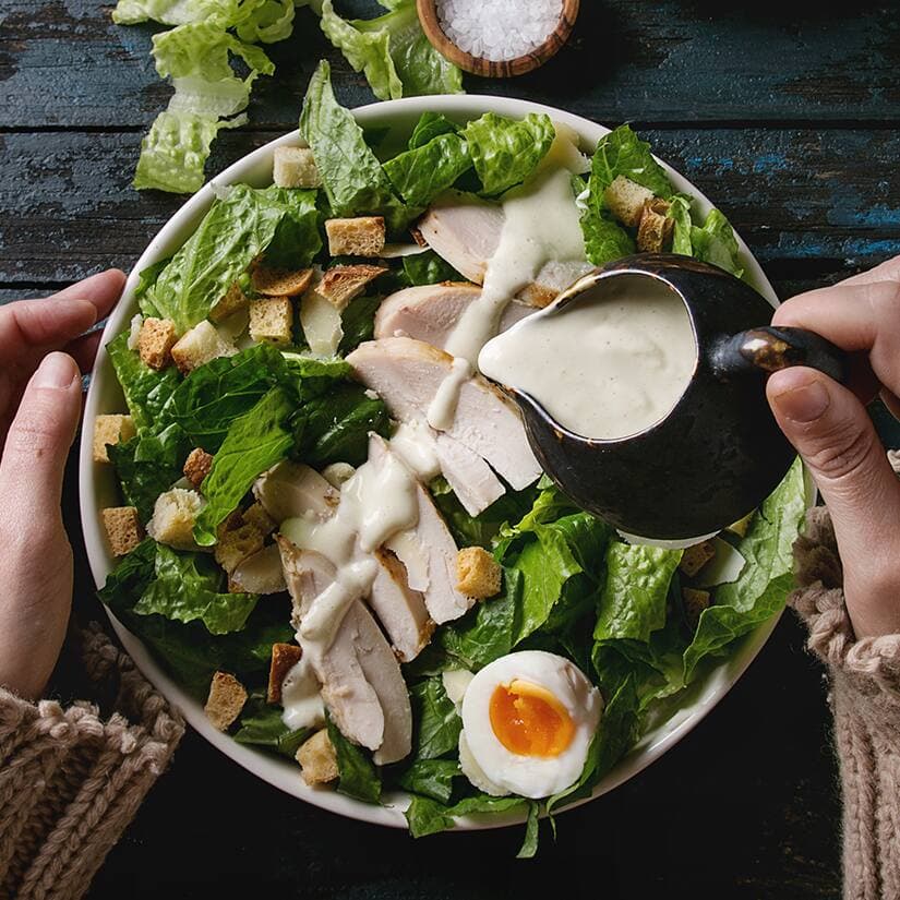 - Dans un petit bol, à l'aide d'un fouet, mélanger le babeurre, le yogourt, l'huile d'olive, le jus de citron, le zeste de citron et la pâte d'anchois. Saler et poivrer. Incorporer le parmesan. (La sauce se conservera jusqu'à 2 jours au réfrigérateur.)