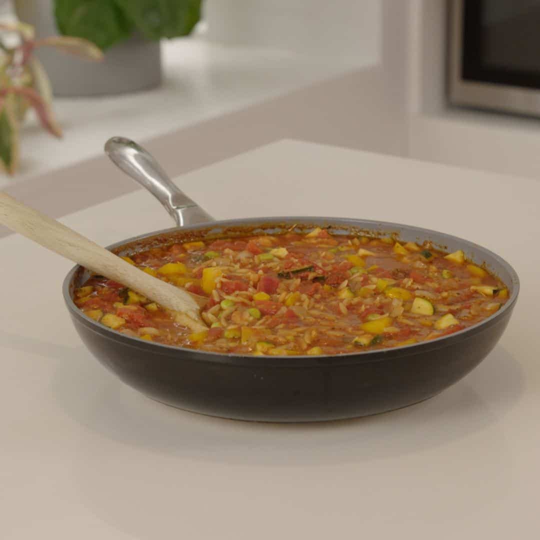 Étape 6: Brasser fréquemment et laisser cuire environ 10 minutes, le temps que l’orzo soit bien cuit.