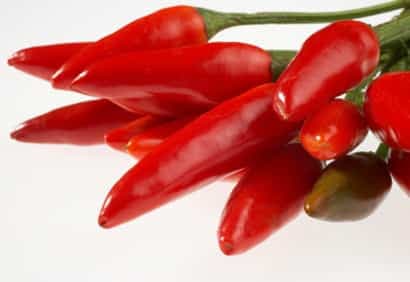- Le poivre de Cayenne est un tonifiant et un agent excitant qui stimule la circulation sanguine. Il contient un taux élevé de vitamine C. À forte dose, devient irrigant et chauffant. Il est meilleur que le poivre noir, aussi considéré comme un excitant. Ce dernier irrite les voies génito-urinaires, ce qui entraîne une stimulation du centre nerveux responsable de l'érection.