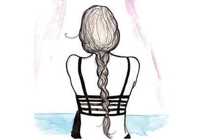 Étape 5: Attacher les extrémités avec un élastique. Couper l’élastique de la queue de cheval, puis terminer avec le vaporisateur Fix Fabulous, de Kérastase, pour davantage de brillance. L’astuce de Judith: «Pour figer la coiffure, tout en conservant un effet flou, on peut fixer la base de la tresse avec des bobby pins au niveau de la nuque. Pour une variante un peu plus chic, lorsqu’effectuée sur les cheveux mouillés, on peut départager les cheveux avec une raie sur le côté.»