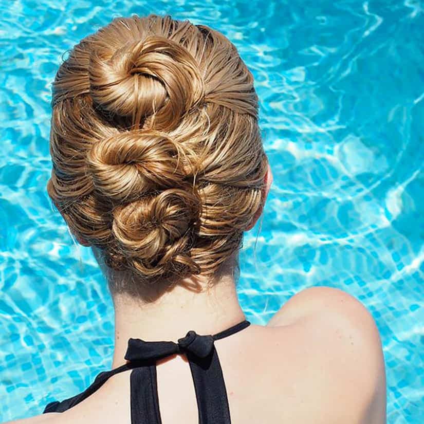 Pour donner une touche originale à un chignon traditionnel, on en superpose trois! En prime, une fois que nos cheveux sont secs, on peut les défaire et obtenir une jolie chevelure ondulée.