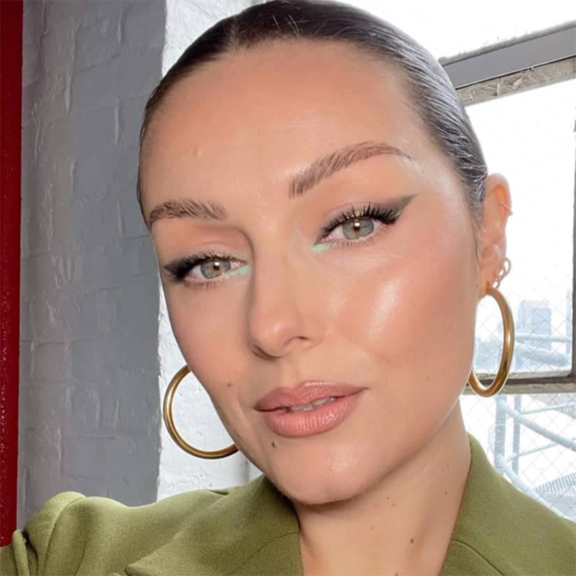 La décennie des 1960 était particulièrement choyée en matière de looks beauté. Pour adapter le style en 2022, on pige dans certaines tendances de cette époque. L'œil graphique avec la ligne double en est une, tout comme la bouche rosée et les cils du bas très épais.