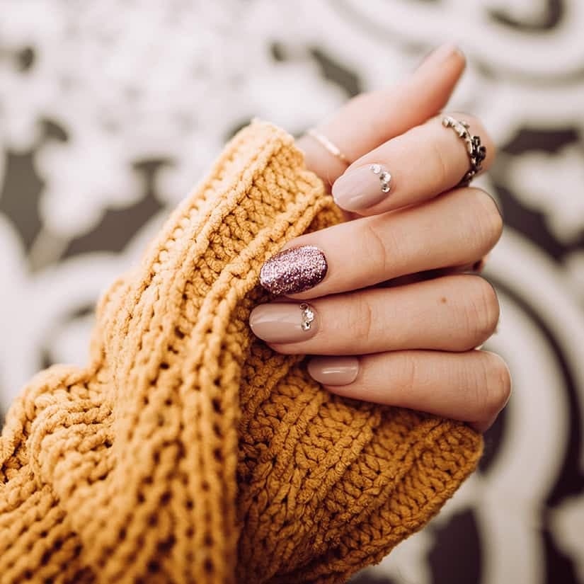 Les brillants de couleur or sont une belle manière de rajouter du pep à sa manucure. Vous pouvez choisir de l’appliquer sur une couche de couleur ou sur vos ongles nus.
