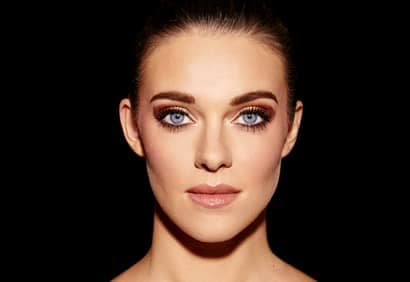 Pour commencer, on unifie le teint en enchaînant les étapes: on hydrate et apprête notre peau, on se poudre le visage et on camoufle les imperfections. Ensuite, on met nos pommettes en valeur avec du blush en poudre vieux rose, du creux des joues jusqu'aux tempes. On remplit les sourcils avec un fard d'une couleur s'harmonisant avec nos poils naturels, avant de les fixer avec un gel teinté, puis on maquille nos yeux. Pour un maximum d'effet, on porte des faux cils pour la soirée. On complète le look en recouvrant la bouche de rouge à lèvres rose satiné.