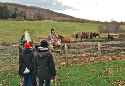 La photographe Manon Boyer et ses deux assistants avaient prévu le coup et amené quelques friandises pour les chevaux!