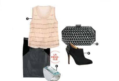 La pièce-clé: Jupe en similicuir et polyester (25$, chez Suzy Shier; TP-G).