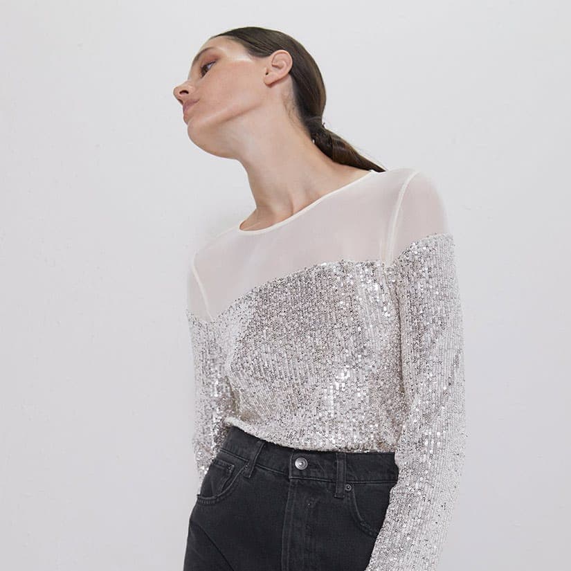 5- TOP BI-MATIÈRE À PAILLETTES de Zara