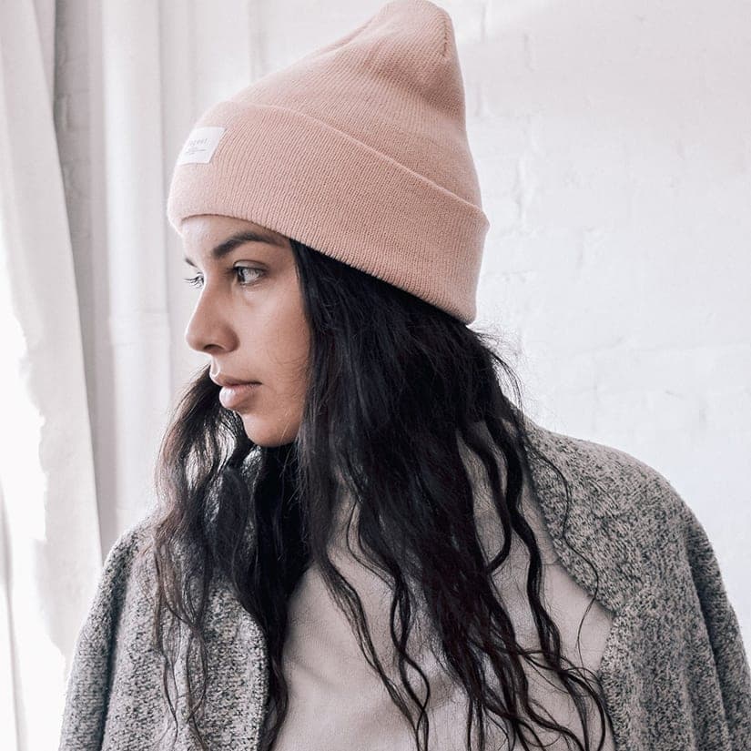 Le rose poudré de cette tuque donne un air de printemps aux jours froids de l’hiver.