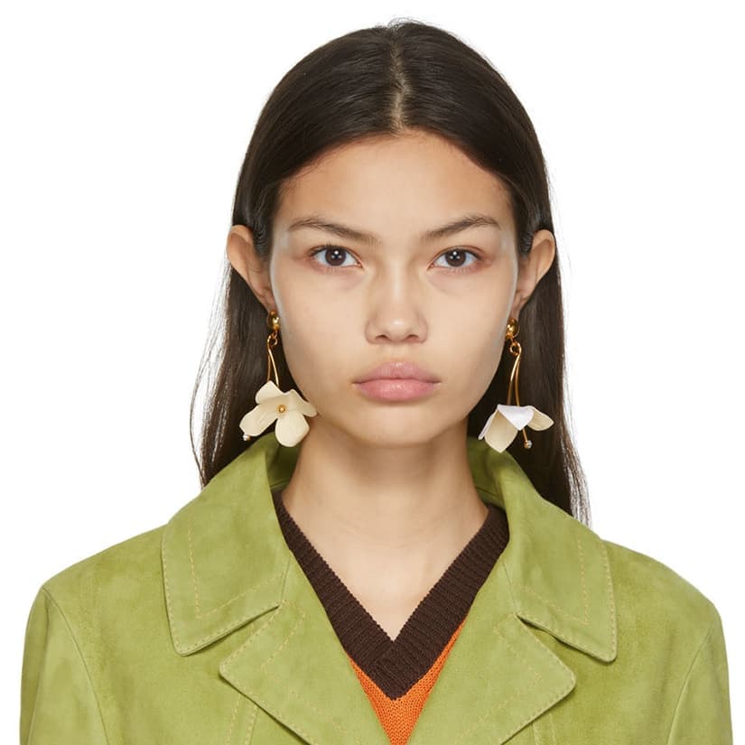 8- Boucles d'oreilles graphiques doré et blanc cassé à clip de MARNI