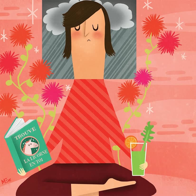 Je ne compte plus le nombre de personnes qui m’ont fortement recommandé de méditer, d’essayer l’aromathérapie, de ne plus consommer de café, de boire du kombucha et de faire une retraite dans un monastère... Merci pour les conseils. Mais mon bien-être à moi passe plutôt par la course, le macaroni au fromage et le farniente. Et je dois admettre que mon état d’être, qui est loin d’être parfait, me plaît bien. Les aspérités de mon âme et les faux bonds de mon corps font de moi ce que je suis.