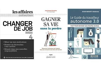 Sur le marché du travail depuis quelques années, on n’est plus sûr de rien? Avant de laisser notre emploi, ce guide pratique nous accompagne dans notre réflexion. On s’interroge sur nos besoins, désirs et compétences, on élabore un plan d’action et on met tout en œuvre pour réussir notre changement de cap sans anicroche. (Transcontinental, 2009, 140 p., 19,95$)